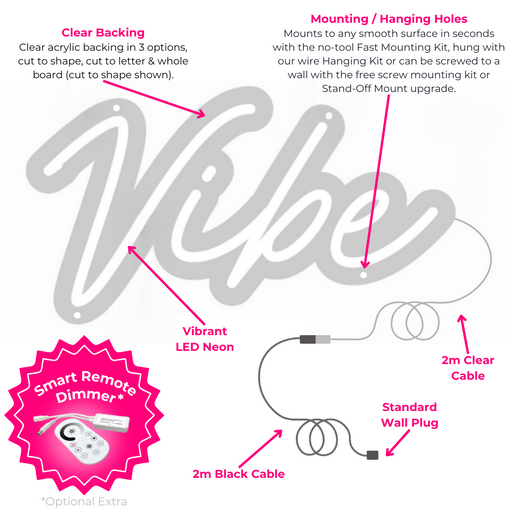 View full detailsSize: 20x10cm Colour: Pastel Pink Stand, Dimmer and Plug with 3m cable included This stunning and unique sign is handmade in England, and is perf...