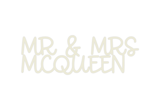 View full detailsText: MR & MRS MCQUEEN Text Align: left Font: Social Colour: Cozy Warm WhiteSize: 60cm wide / 60cm X 33cm / 24in X 13i...
