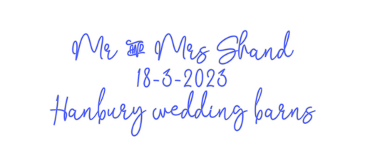 View full detailsText: Mr & Mrs Shand 18-3-2023 Hanbury wedding barns Text Align: center Font: Notification Colour: Santorini ...
