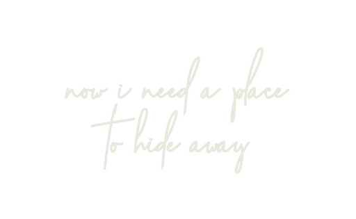 View full detailsText: now i need a place to hide away Text Align: center Font: Boujee Colour: Cozy Warm WhiteSize: 100cm wide / 100cm X 56...