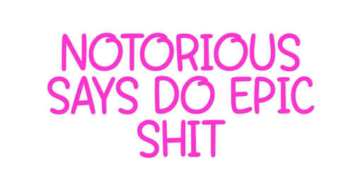 View full detailsText: NOTORIOUS SAYS DO EPIC SHIT Text Align: center Font: Basic Colour: Love Potion PinkSize: 100cm wide / 100cm X 47cm /...