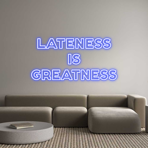 Ver todos los detallesText: LATENESS IS GREATNESS Text Align: centerFont: ContourColour: Santorini BlueSize: 60cm wide / 60cm X 25cm / 24in X 10inBackboar...